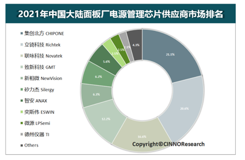(May 11, 2022, Beijing) Recently, CINNO Research announced the Power Management IC Chip Purchase Amount Ranking of Panel Factories in Chinese Mainland in 2021. Chips for PMIC (Power Management IC chips) of Chipone Technology (Beijing) Co., Ltd. (“Chipone”) topped the ranking with a market share of 21.1%.