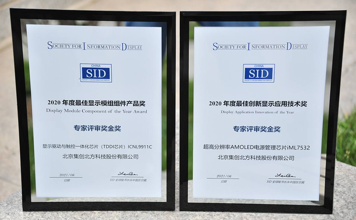 (June 2, 2021, Beijing, China) -- Today, the International Conference on Display Technology (ICDT 2021) brought to a successful close in Beijing, which is co-hosted by Beijing Chapter, Taipei Chapter and Hong Kong Chapter of the Society for Information Display (SID) and undertaken by BIE and SID China. On the closing ceremony, the presentation of CDIA awards became the most eye-catching session. Two products of Chipone attracted high great recognition of the Judging Panel and won the gold awards. Chipone’s iICNL9911C, an integrated display driver and touch chip (TDDI chip), won the Display Composition of the Year - Gold Award. iML7532, an UHR AMOLED power management chip, won the Display Component Innovation of the Year Award - Gold Award.