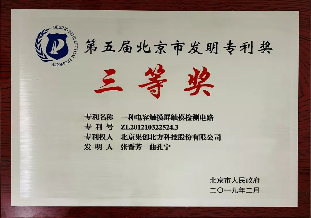 近日,第五屆北京市發(fā)明專利獎共評選出獲獎項目36項。北京市發(fā)明專利獎是北京市政府為表彰在本市行政區(qū)域內(nèi)具有重大經(jīng)濟社會效益的發(fā)明專利而設立的專項政府獎勵項目獲獎專利具備技術水平高、經(jīng)濟效益好、具有市場競爭能力等特點。集創(chuàng)北方的專利《一種電容觸摸屏觸摸檢測電路》獲頒三等獎。