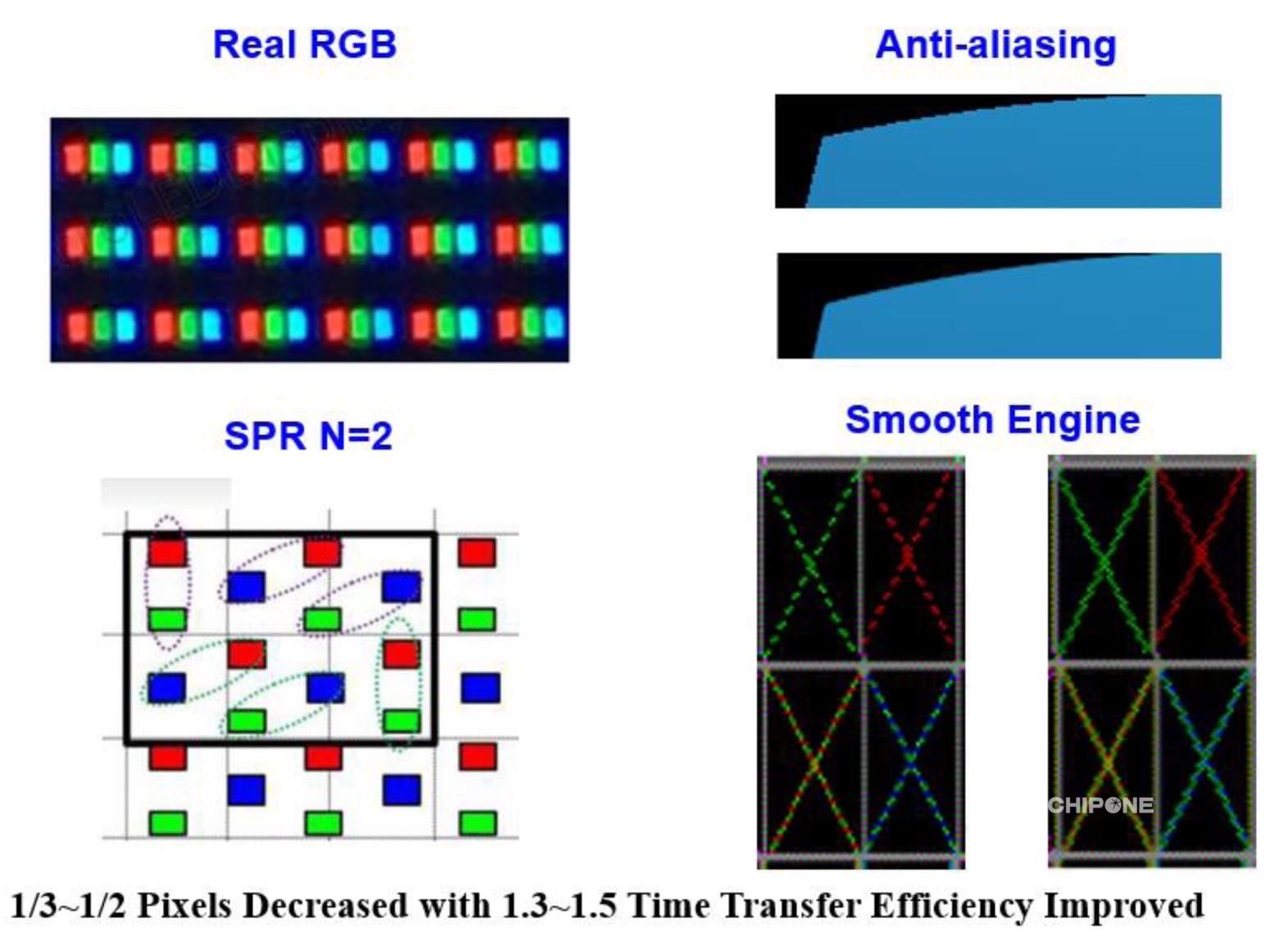 為了追求別致而形成的異性屏幕,IC的算法可以處理包括Round,Notch , Hole等在內(nèi)的各種奇特的面板外形。并使得邊緣不會產(chǎn)生色彩偏差和鋸齒紋的出現(xiàn)。
