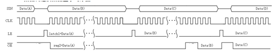 ? data(B)傳送完成后,由LE產(chǎn)生latch信號,鎖存data(B),并接著傳送data(C)